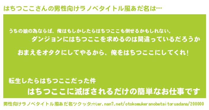 | 女子向けラノベタイトル風あだ名 | 『はちつここ恋絵巻』 |