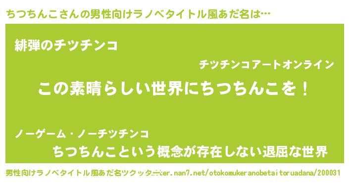 | ヒーロー風カッコイイあだ名 | 『仮面チツダー』『ネオチツチンコ』 |