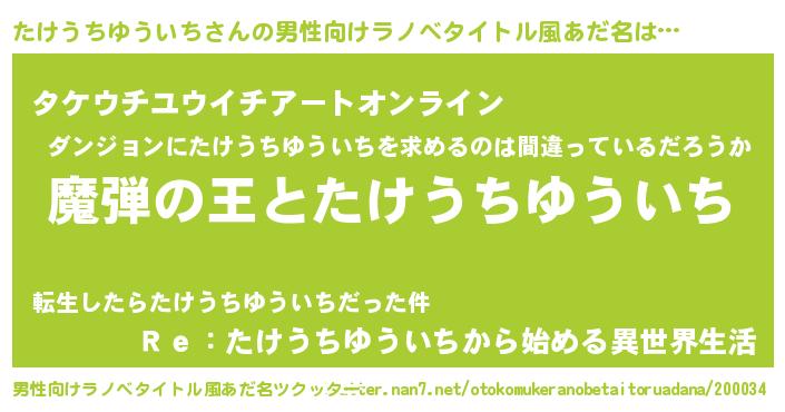 | 意味不明あだ名 | 『住所不定無職たけうちゆういち(7歳)』 |