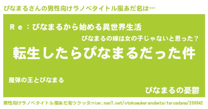 | 意味不明あだ名 | 『なめこ科ぴなまる属』『自称ぴなまる』 |