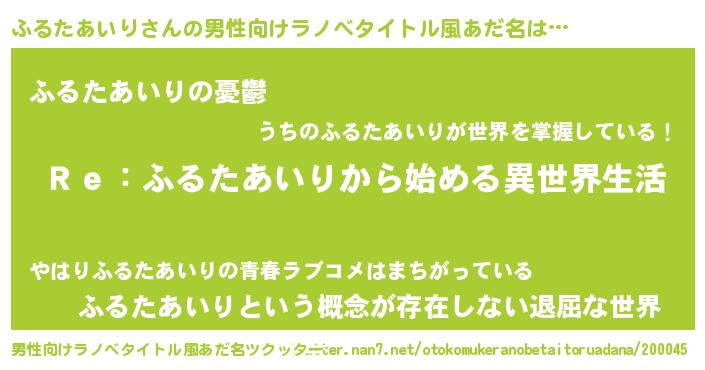| 胡散臭い通販商品みたいなあだ名 | 『テレビで話題の冬虫夏草…その名も「ふるたあいり」』 |