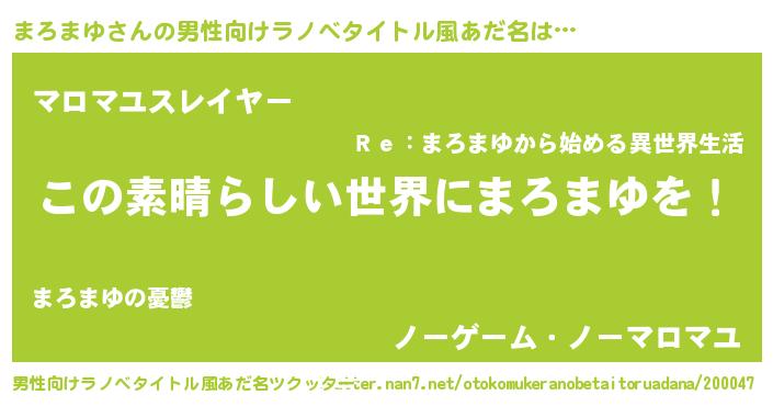 | 意味不明あだ名 | 『住所不定無職まろまゆ(2歳)』 |