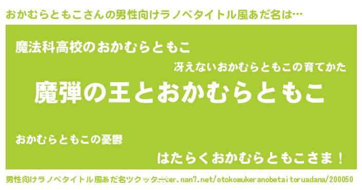 | 女子向けラノベタイトル風あだ名 | 『乙女ゲームの破滅フラグしかない悪役おかむらともこに転生してしまった…』 |