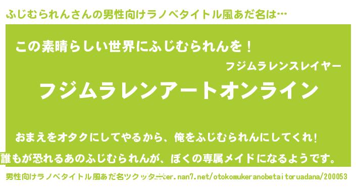 | 女子向けラノベタイトル風あだ名 | 『誰かこのふじむられんを説明してください! ~契約から始まるウェディング~』 |