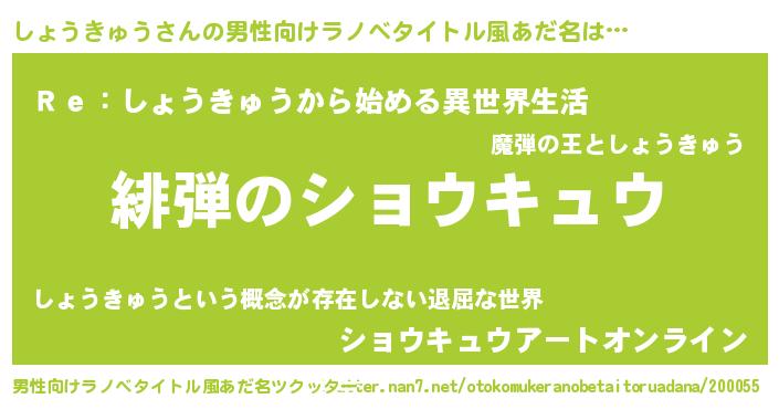 | 女子向けラノベタイトル風あだ名 | 『シンデレラしょうきゅう家の靴箱館』 |