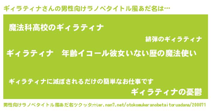 | 意味不明あだ名 | 『ニラ科ギィラティナ属』 |