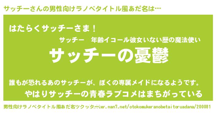 | 女子向けラノベタイトル風あだ名 | 『サッチー姫と円卓の騎士』 |