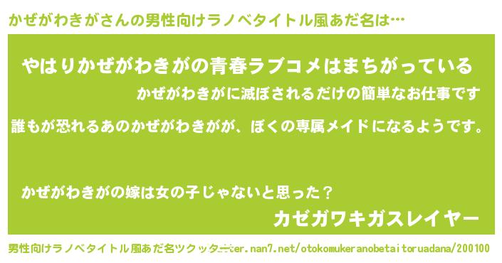 | 伝説のあだ名 | 『古文書に記された勇者かぜがわきが』 |