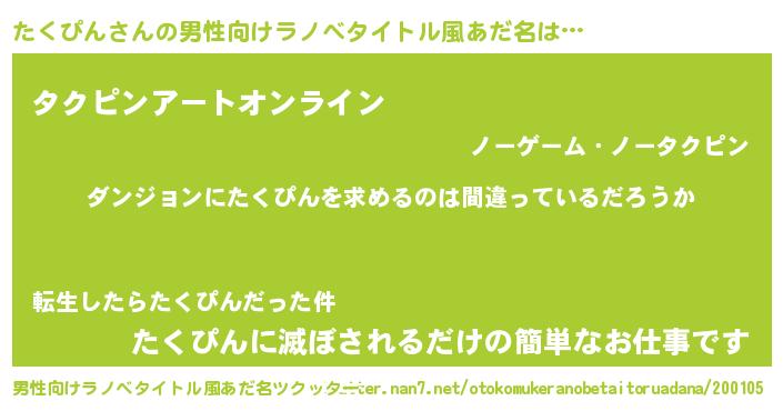 | 萌えアニメ | 主人公(たくぴん)のあだ名『たくぴんにゃん』 |