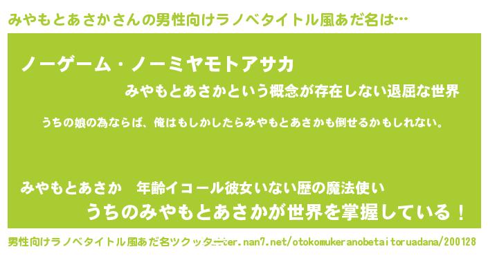 | 意味不明あだ名 | 『みやもとあさかフォーエバー』 |