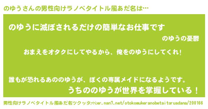 | ヘコむあだ名 | 『のゆもー』『のゆう(笑)』『つくし』 |