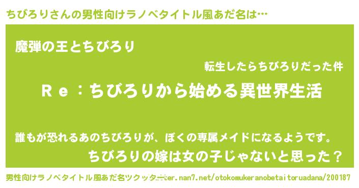 ちびろりさんの男性向けラノベタイトル風あだ名をツクッター!