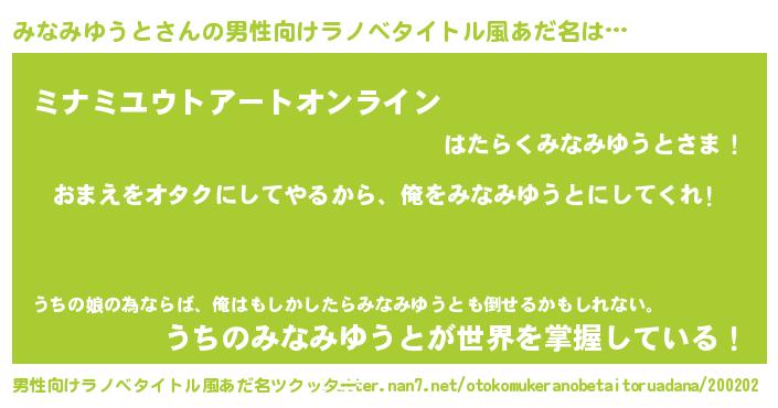 | 胡散臭い通販商品みたいなあだ名 | 『100人中100人が認めたイリジウム磁石…その名も「みなみゆうと」』 |