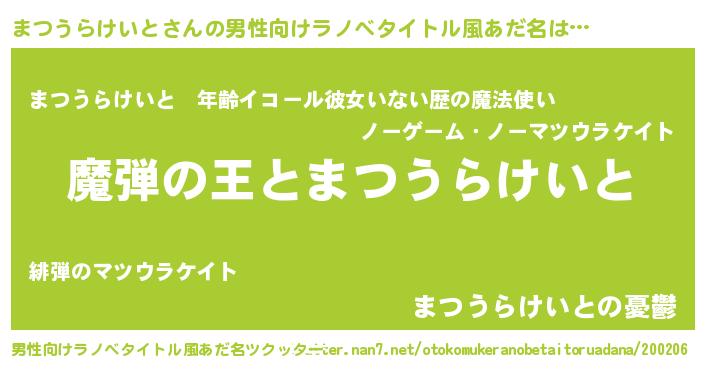 | 意味不明あだ名 | 『住所不定無職まつうらけいと(9歳)』 |