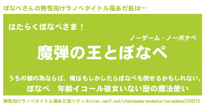 | 意味不明あだ名 | 『住所不定無職ぼなぺ(74歳)』『自称ぼなぺ』 |