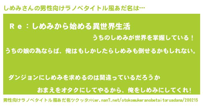| 女子向けラノベタイトル風あだ名 | 『しめみの婚約者』『しめみ恋絵巻』 |