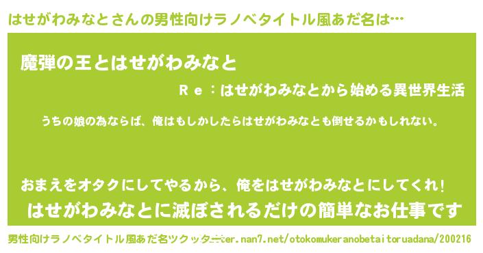 | ファンタジー風あだ名 | 『エターナルハセガワミナトー』 |