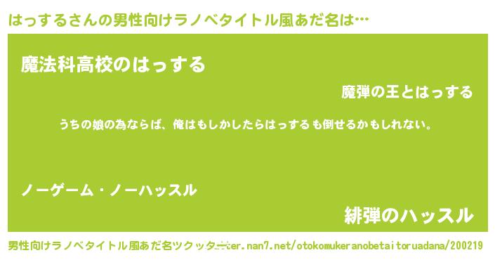 | 女子向けラノベタイトル風あだ名 | 『はっするの婚約者』『はっする恋絵巻』 |