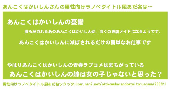| 胡散臭い通販商品みたいなあだ名 | 『モテモテ間違いなし水晶球…その名も「あんこくはかいしん」』 |