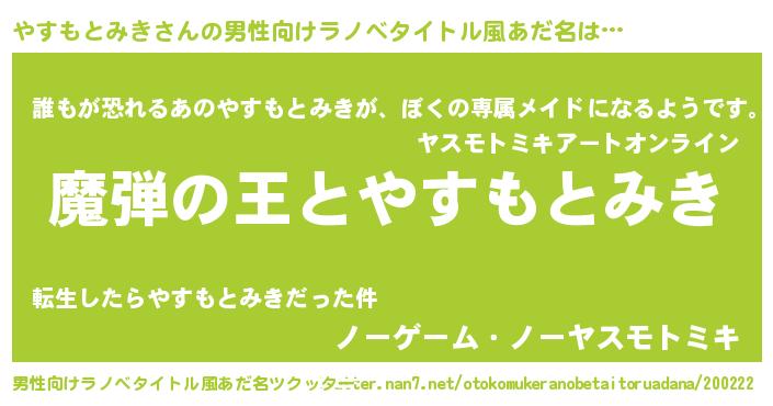 | ヒーロー風カッコイイあだ名 | 『仮面ヤスダー』『ネオヤスモトミキ』 |
