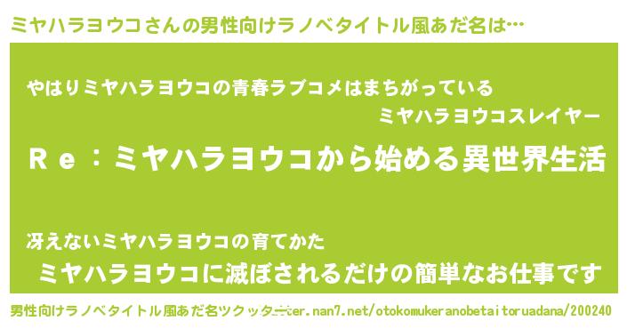 | 女子向けラノベタイトル風あだ名 | 『ミヤハラヨウコストレイドッグス』 |