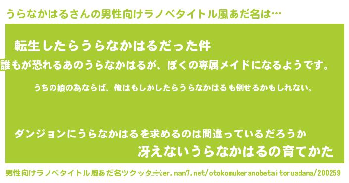 | 胡散臭い通販商品みたいなあだ名 | 『運命の人と巡り会える高級そうな絵画…その名も「うらなかはる」』 |