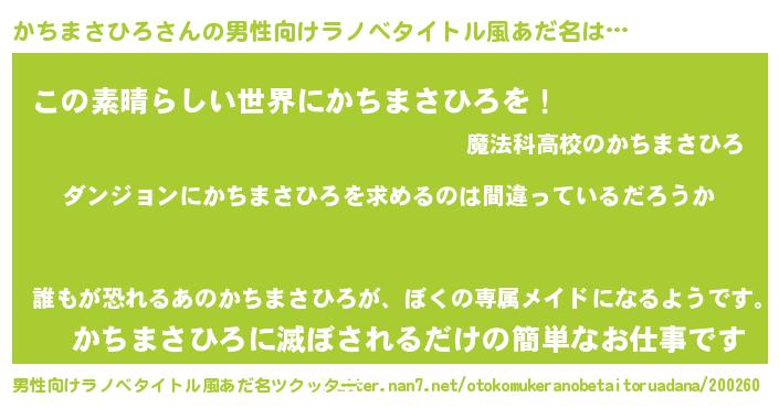 | 女子向けラノベタイトル風あだ名 | 『かちまさひろは平凡を望む』 |