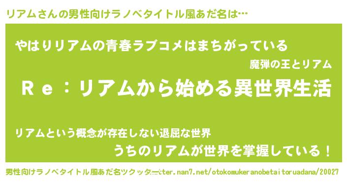 | 女子向けラノベタイトル風あだ名 | 『リアムストレイドッグス』 |