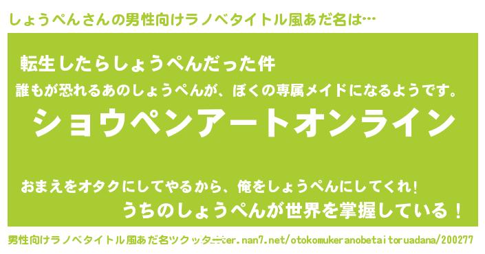 しょうぺんさんの男性向けラノベタイトル風あだ名をツクッター!