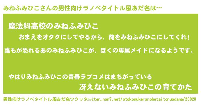 | 女子向けラノベタイトル風あだ名 | 『みねふみひこの契約王妃』 |