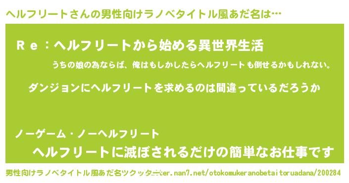 | 胡散臭い通販商品みたいなあだ名 | 『信頼と実績のペンダント…その名も「ヘルフリート」』 |