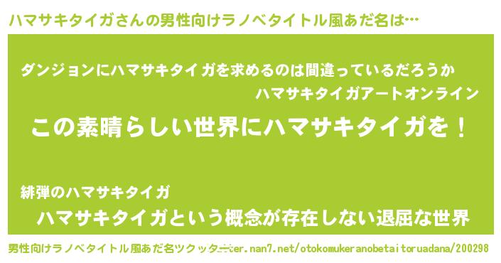 | 意味不明あだ名 | 『住所不定無職ハマサキタイガ(9歳)』 |