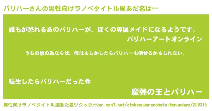 女子向けラノベタイトル風あだ名 | 『バリハーの婚約者』 |