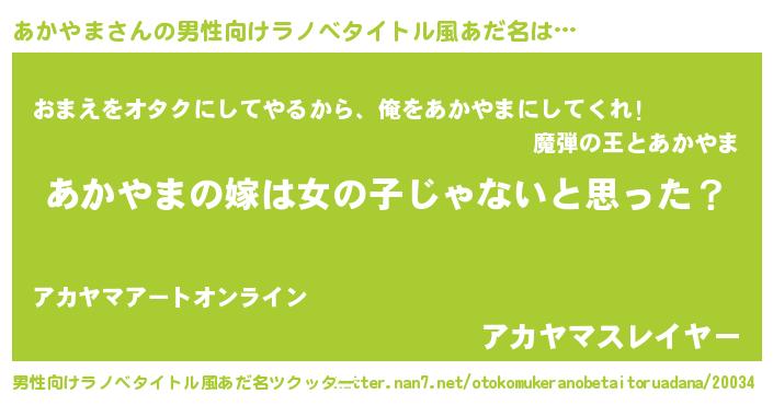 | 女子向けラノベタイトル風あだ名 | 『あかやま様がみてる』 |