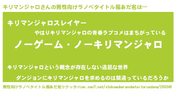 | 女子向けラノベタイトル風あだ名 | 『キリマンジャロ恋絵巻』 |