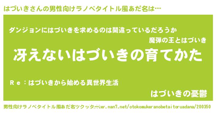 | 胡散臭い通販商品みたいなあだ名 | 『伝統あるサプリメント…その名も「はづいき」』 |