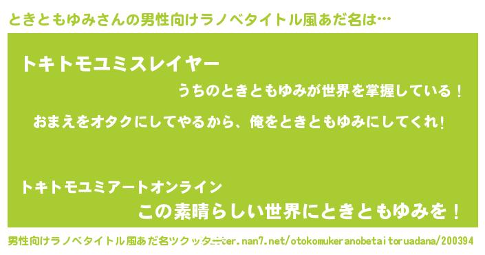 | 女子向けラノベタイトル風あだ名 | 『ときともゆみ夫妻のなれそめ』 |