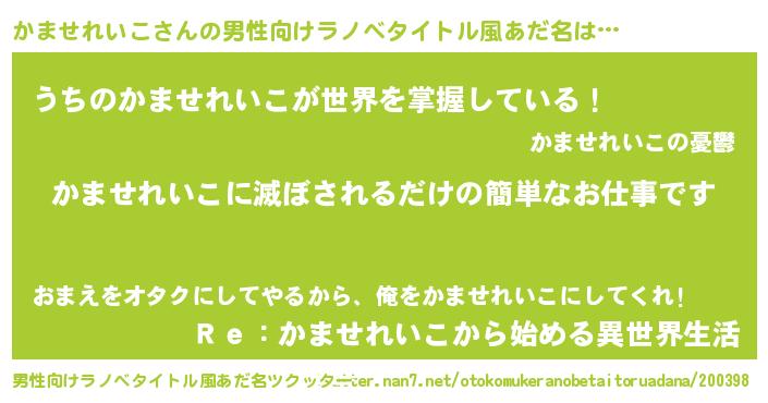 | ヒーロー風カッコイイあだ名 | 『サイバー戦士カマセレイコ』 |