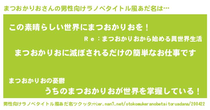 | ピコ太郎風あだ名 | 『マコ二郎』『マツ八郎』『ママ太郎』 |