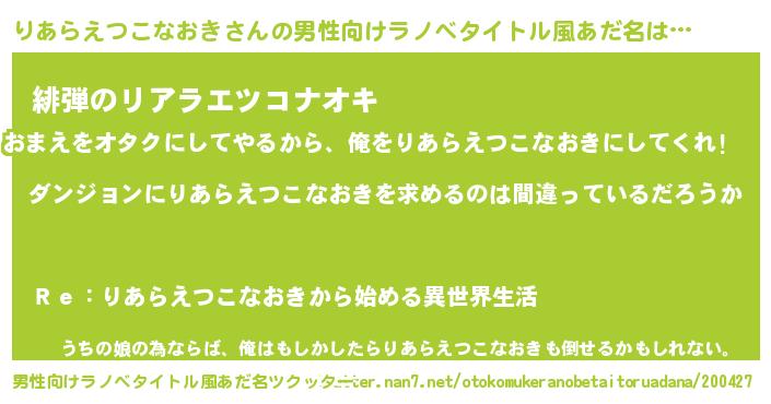| 欧米人風あだ名 | 『ウサインりあらえつこなおき』 |
