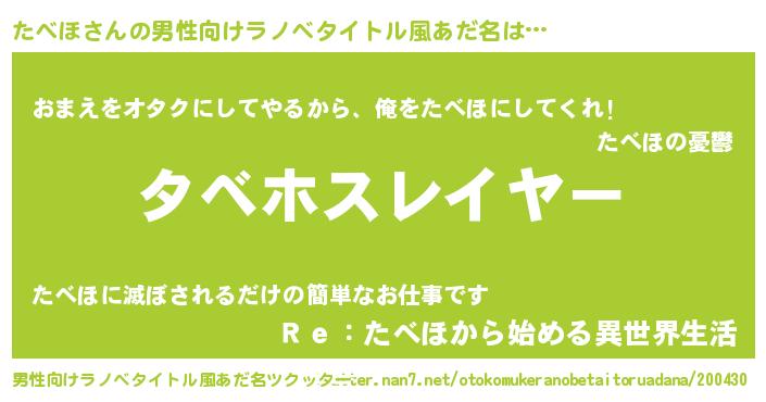 | ヒーロー風カッコイイあだ名 | 『正義の使者たべほ』『スーパータベホ』 |