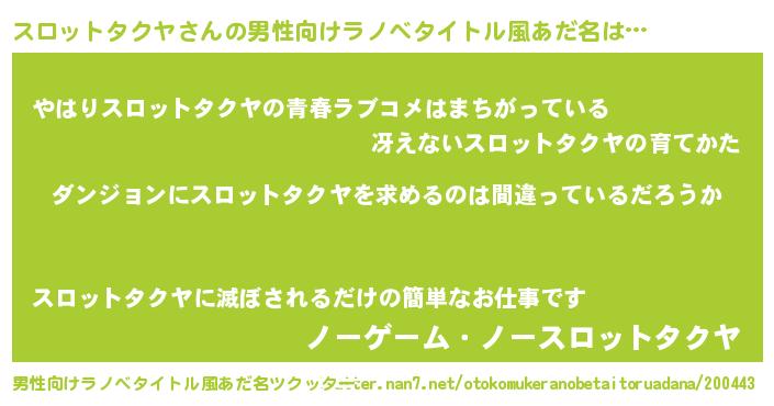 | 意味不明あだ名 | 『とにかく怪しいスロットタクヤ』 |