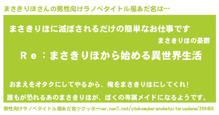 | 女子向けラノベタイトル風あだ名 | 『闇のまさきりほ』 |