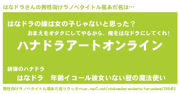 はなドラさんの男性向けラノベタイトル風あだ名をツクッター!