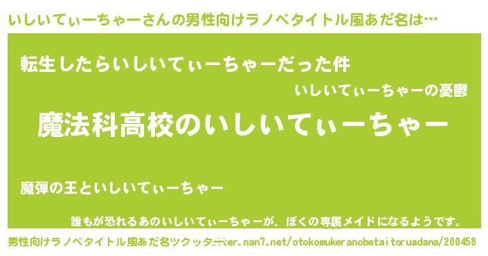 | 女子向けラノベタイトル風あだ名 | 『いしいてぃーちゃーなんてお断りですっ。』 |
