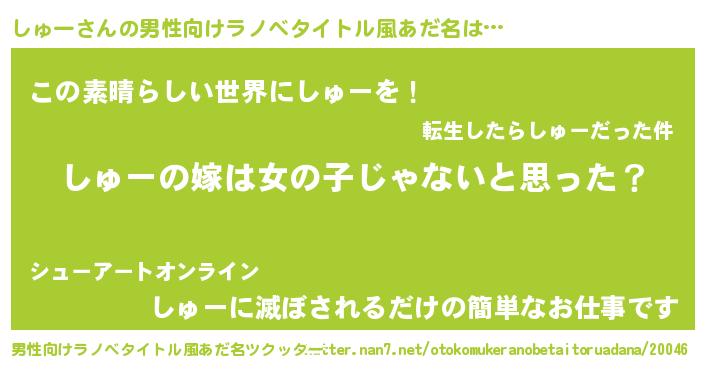 | 意味不明あだ名 | 『とにかく怪しいしゅー』『自称しゅー』 |