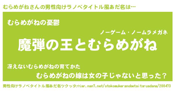 | 意味不明あだ名 | 『住所不定無職むらめがね(50歳)』 |