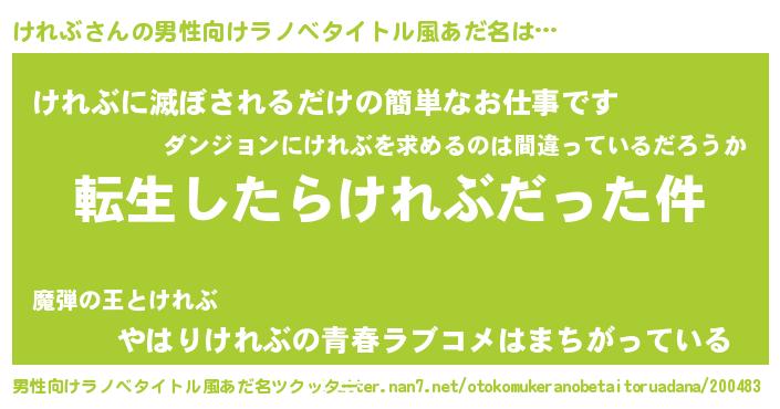 | 意味不明あだ名 | 『なめこ科けれぶ属』『自称けれぶ』 |