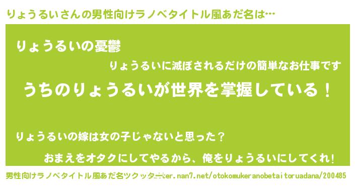 | ヘコむあだ名 | 『りょっふぃ~』『りょぷりん』 |