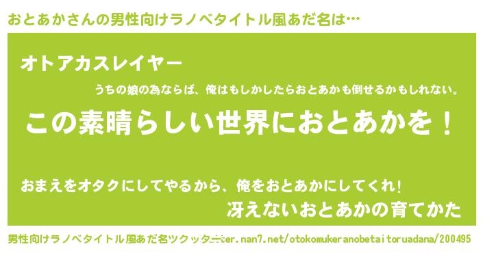 | 意味不明あだ名 | 『住所不定無職おとあか(62歳)』 |